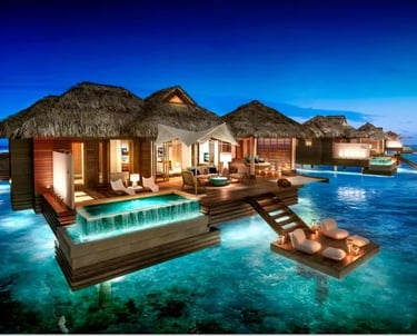 Luxury hotel Suites, including over-water bungalows, offer opulence and tranquility. Imagine waking to breathtaking ocean views, stepping onto your private deck, and immersing yourself in serene turquoise waters. These exclusive retreats provide an escape where luxury and nature converge, creating unforgettable memories.